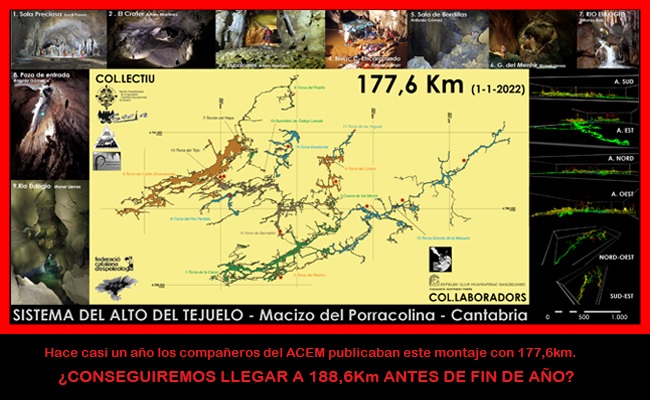 | 16 / AGO / 2024 | Se actualiza desarrollo del Sistema a 210.036m (1009m explorados en la Torca Grande de la Mazuela) |